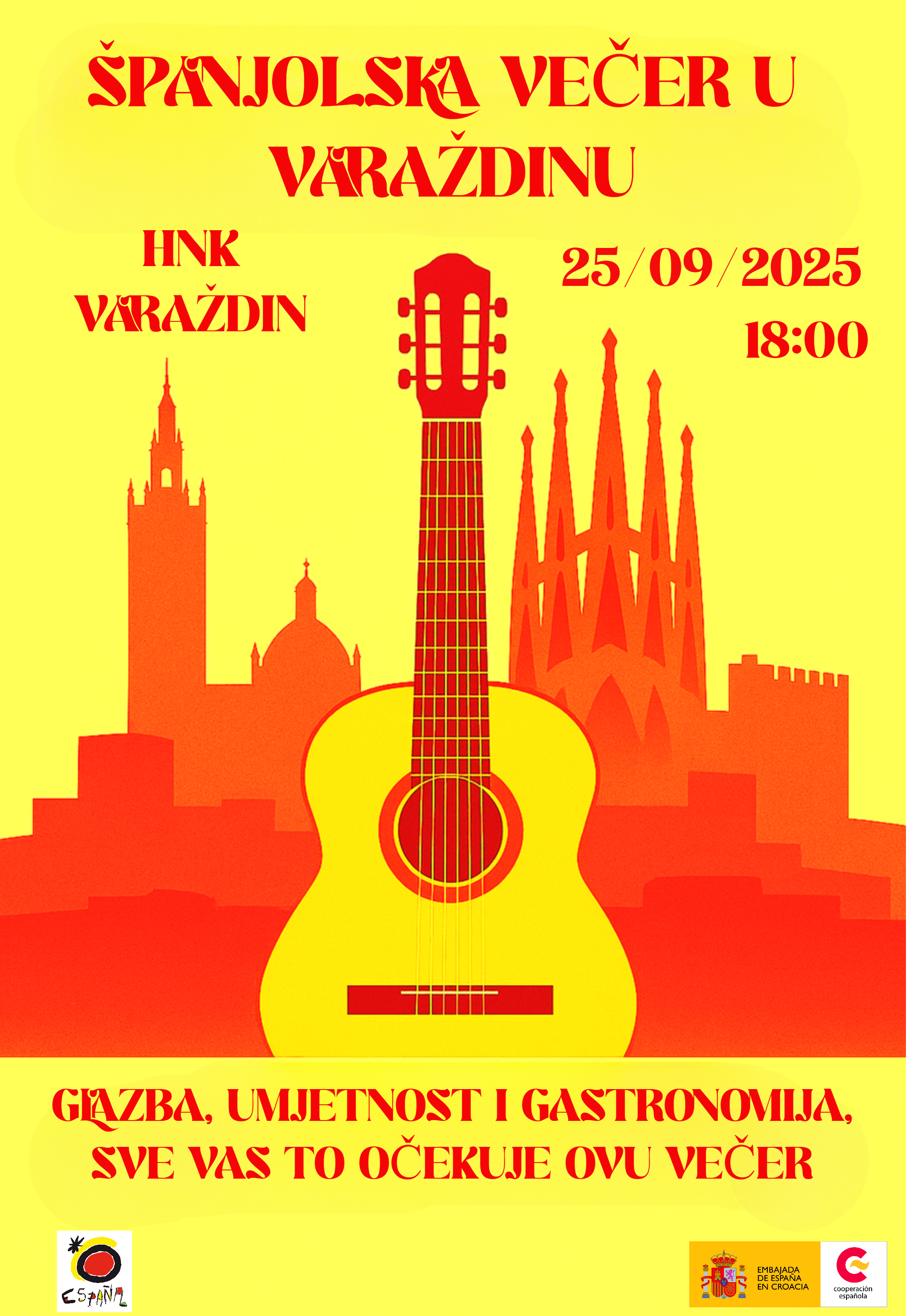 Veleposlanstvo Španjolske u Hrvatskoj sa zadovoljstvom vas poziva da nazočite na popratnim aktivnostima koje, povodom festivala “Varaždinske barokne večeri”, organizira kao prigodu za upoznavanje kulturnog, umjetničkog i gastronomskog bogatstva Španjolske.